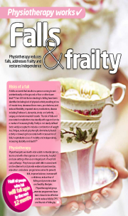 One of the key modifiable influences on frailty is physical activity, especially resisted exercise, and there has been an increasing interest in the role this can play in reducing frailty. As physiotherapists we are ideally placed to play a lead role in prevention of frailty through physical activity promotion in older adults and in offering rehabilitation interventions to those individuals with frailty.