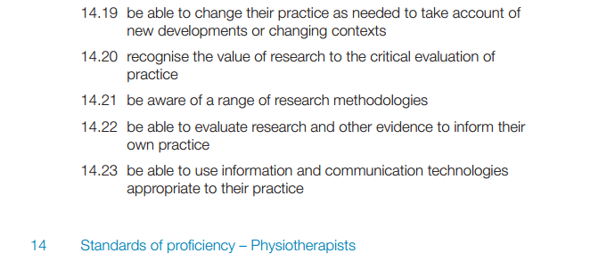Professional standards: What do regulatory and professional standards expect of us in regards to integrating research with practice?- Guidelines – What are they, who produces them, do we have to use them and how useful are they
