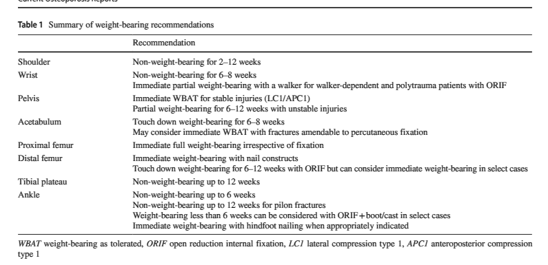 There is also debate around that different weight bearing status actually means – is there any consistency between partial weight bearing and toe touch weight bearing for example?